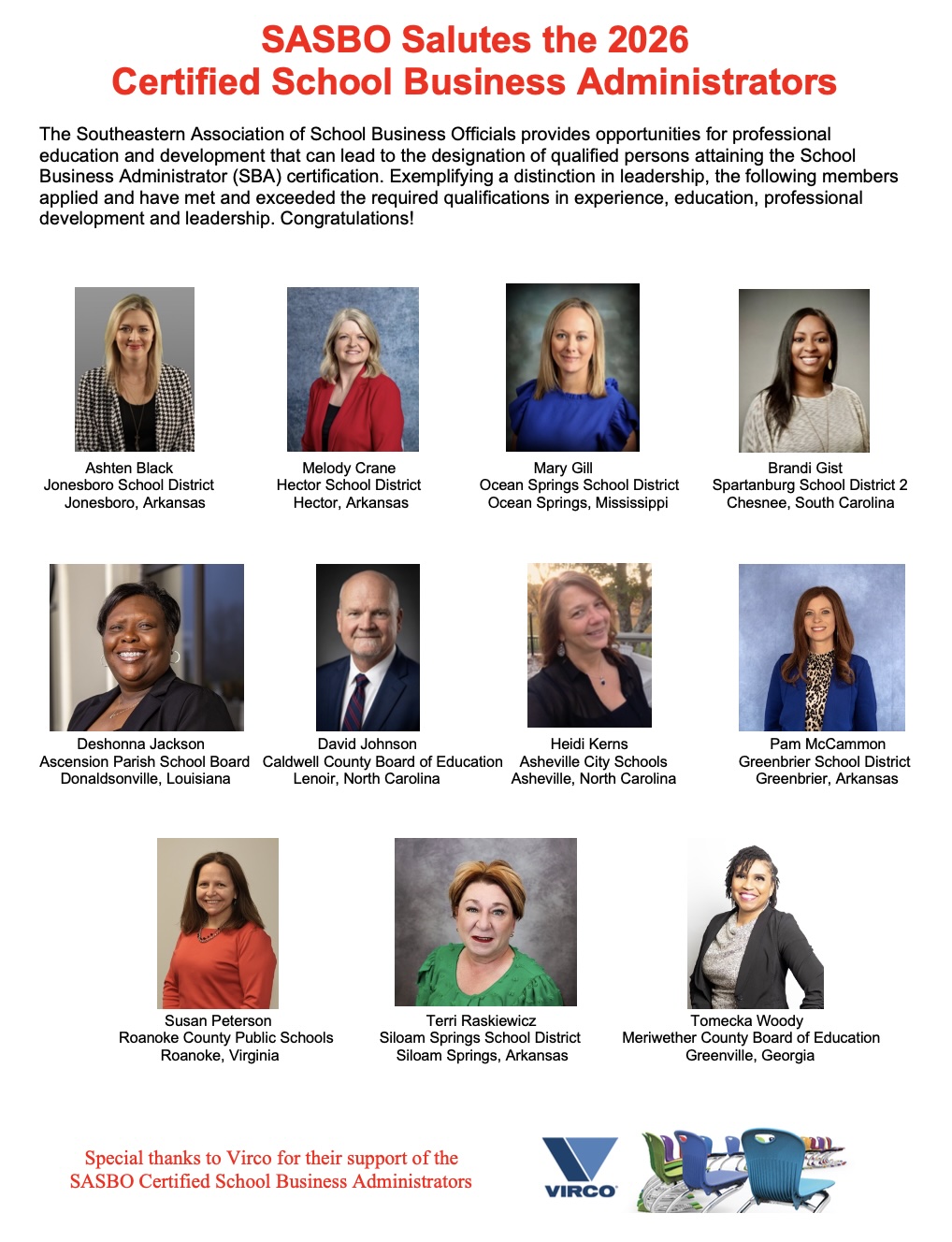 Welcome to the virtual home of the Southeastern Association of School Business Officials!SASBO is your link to a network of business officials through out the Southeast who have jobs just like you. Using online access, you can collaborate and promote with power and passion all you have to offer in enriching individuals and the your education community. We invite you to be a part of our vibrant association! ![]() 2026 SASBO-VASBO Joint Conference